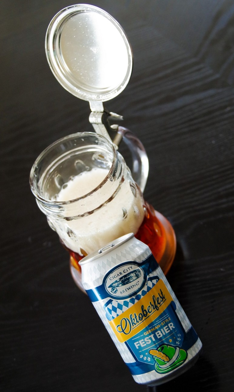 Back in September, I gave you all the lowdown on the seasonal return of Cigar City Brewing’s Oktoberfest German-style Festbier (click here to view that post). Brewed with Hallertauer Mittlefruh hops, Munich malt and five other varieties of German malts, the brewery describes this Festbier as a nod “firmly toward the style’s history with its amber color.” The news of a more traditional, heartier, locally-produced Oktoberfest lager certainly piqued the interest of my German side, and I just had to go out and grab a few cans to experience this one for myself. So, here we are . . . can in hand . . . stein at the ready . . . I guess the only thing left to do is get to some Tasting Notes!