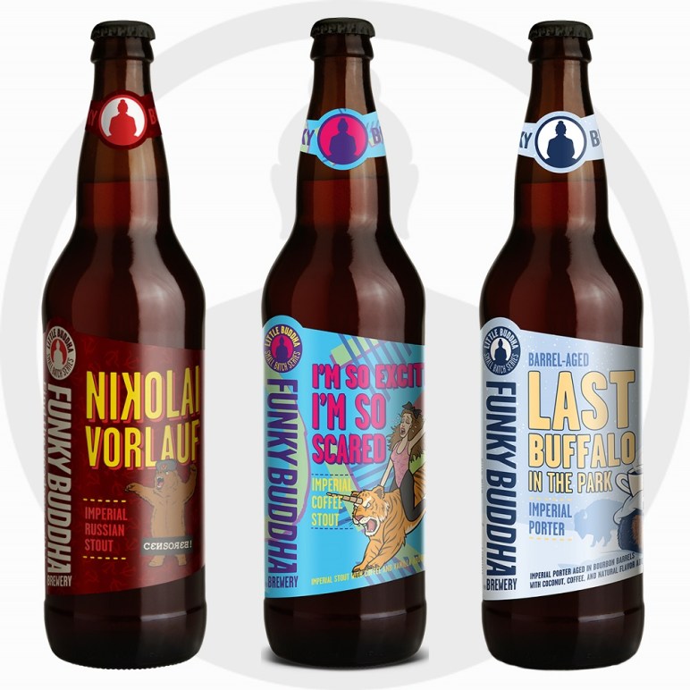 Funky Buddha Brewery (Oakland Park, Florida) has announced the release of three holiday, craft beer treats during the month of December 2016: Nikolai Vorlauf Imperial Russian Stout, I’m So Excited, I’m So Scared Imperial Coffee Stout, and Last Buffalo in the Park.