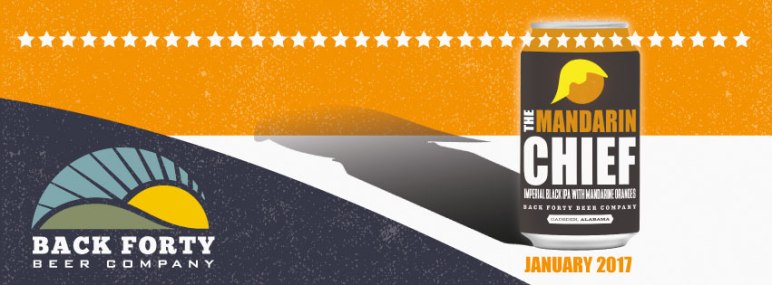 Back Forty Beer Company (Gadsden, Alabama) recently announced that they will officially release Mandarin Chief Imperial Black IPA on Friday, January 20.