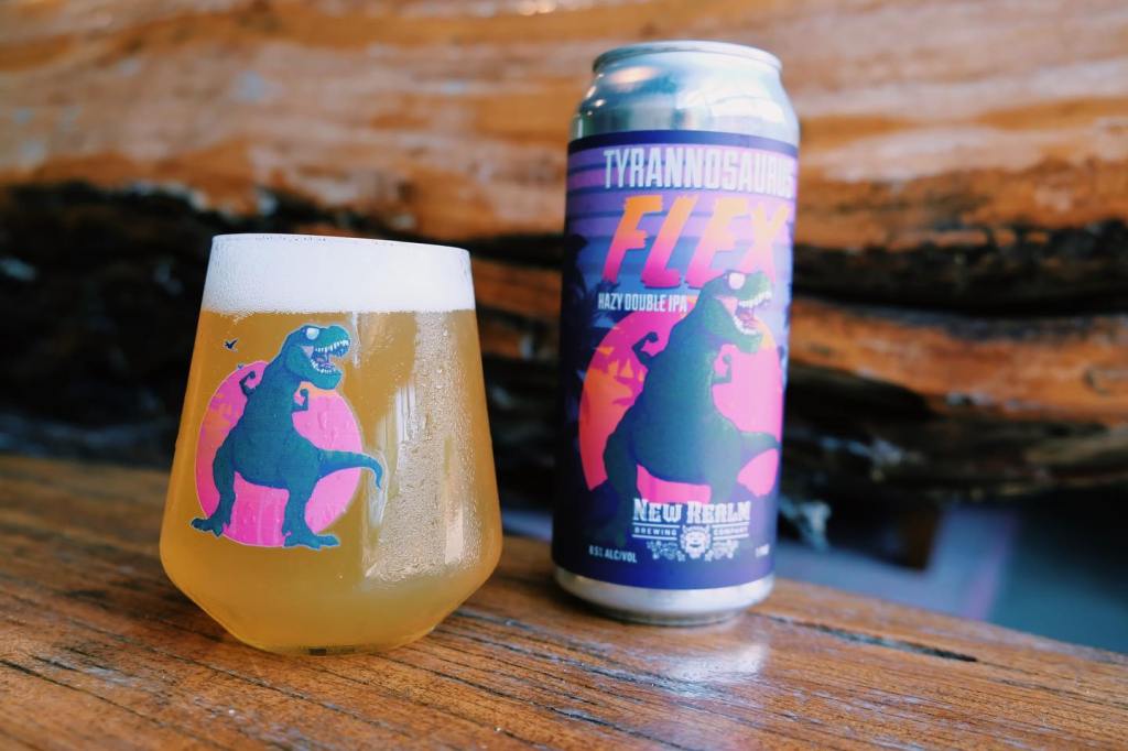 “In addition to being a monster DIPA loaded with juicy and fruity notes, Tyrannosaurus Flex’s label just won the Craft Beer Marketing Awards ‘Crushie’ for the People’s Choice category – Best 16oz Can Design. Our fans have told us they not only love this brand for the beer inside the can, but also the playfulness and great artwork on the label,” said Bob Powers, CSMO and Co-Founder of New Realm Brewing.