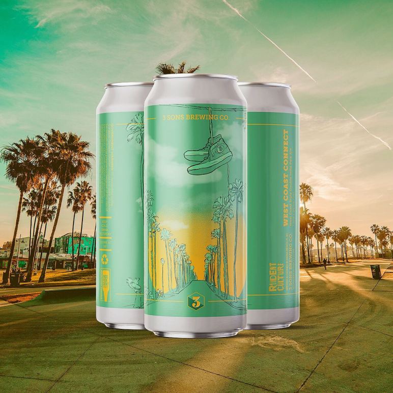 3 Sons Brewing Company (Dania Beach, Florida) has officially announced that it will begin the Limited Can Release of West Coast Connect, a West Coast-style Double IPA brewed in collaboration with Resident Culture Brewing Company (Charlotte, North Carolina), on Wednesday, September 23.