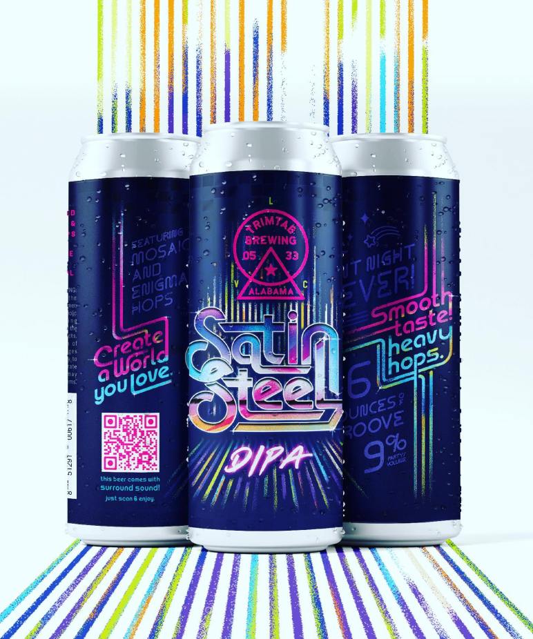 Fun Fact – “TrimTab Brewing is now available in SURROUND SOUND!! Scan any can of Satin Steel and enjoy a playlist that will keep you groovin while you’re boozin.”