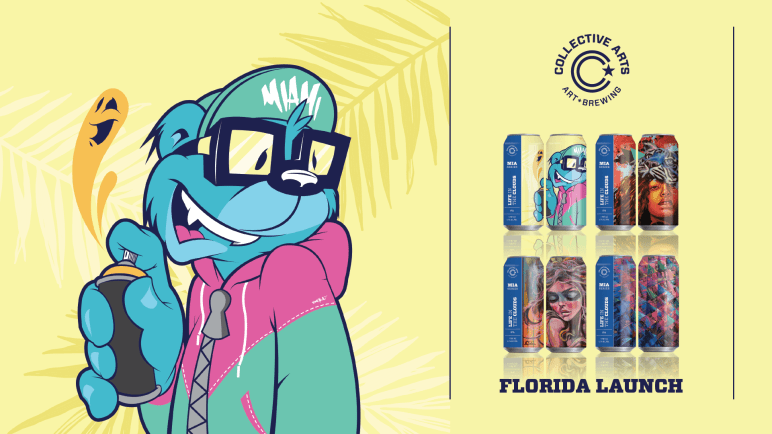 Beginning on November 10, ten representatives from Collective Arts Brewing will be “traveling throughout the [Sunshine State], kicking off their Florida expansion with a week’s worth of events featuring art installations, live music, and tap takeovers” (click here to see the full schedule of events). To infuse the festivities with a little Collective Arts style and flair, the brewery has also “partnered with four Miami-based artists to produce limited-edition beer cans as a way to celebrate their official launch.”