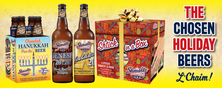 hebrew_webTo properly celebrate 20 years in the craft brewing industry, Shmaltz Brewing Company/HE’BREW Beer (Clifton Park, New York) is going big with the release of four limited offerings during the 2016 Chanukah season: Chanukah, Hanukkah…Pass the Beer; Genesis 20:20; Jewbelation 20; and Shtick in a Box Holiday Variety 12-Pack.