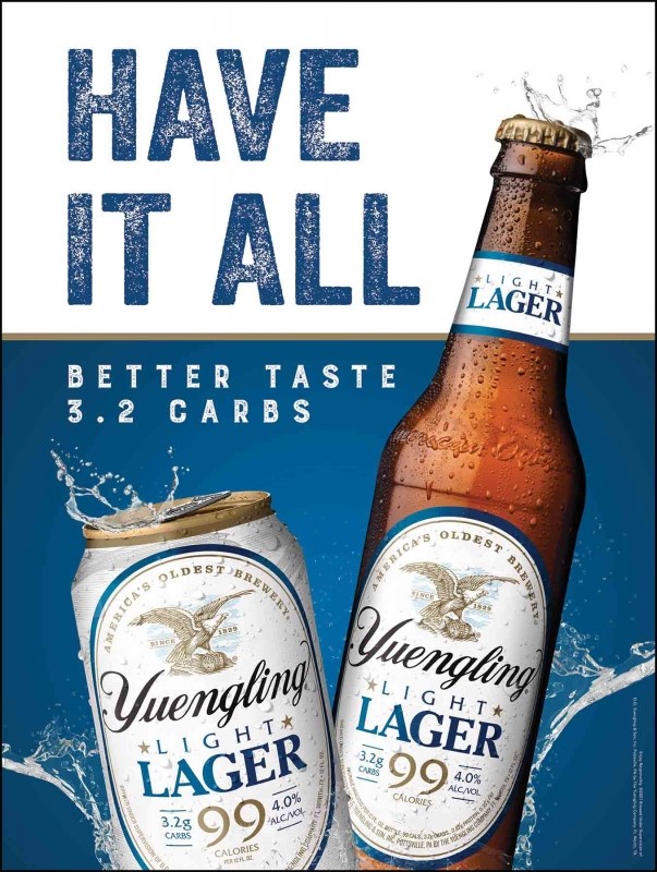 “With today’s demand for low carb and low-calorie beers and a fun-filled summer around the corner, it was the perfect time to push the boundaries of taste with our Light Lager,” said Jennifer Yuengling, Vice President of Operations and 6th generation family member, D.G. Yuengling & Son, Inc. “We listened to our fans’ evolving tastes and responded by refining our Light Lager beer. With this new and improved brew, fans can have it all with low stats without compromising our iconic LAGER taste!”